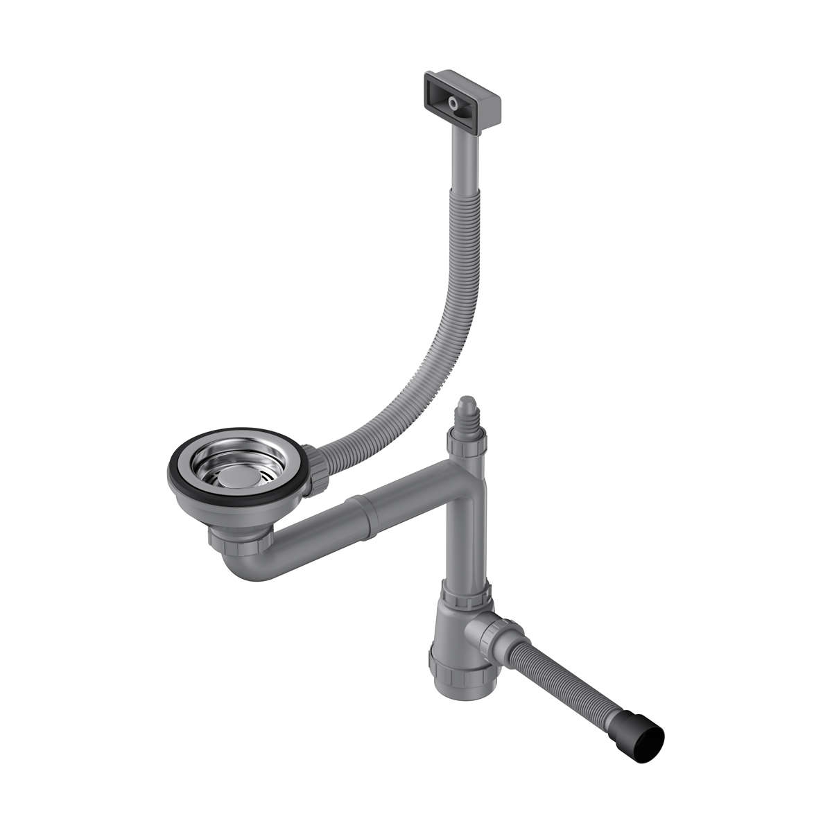 Арматура для одночашевых моек с универсальным прямоугольным переливом вороненая сталь
