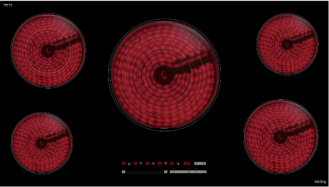 Зоны нагрева Korting оборудованы современными нагревательными элементами HiLight. В этих конфорках в качестве нагревательного элемента применяется уложенная змейкой лента из высокоомного сплава, конфорка достигает установленной рабочей температуры буквально за считанные секунды, позволяет плавно регулировать мощность, излучаемое тепло очень равномерно распределяется по всей рабочей зоне.