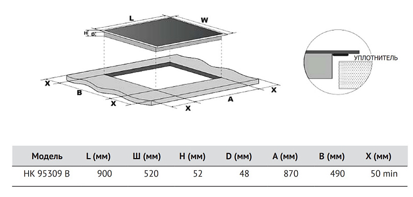 Размеры встраивания (ВхШхГ) (мм): 870х490