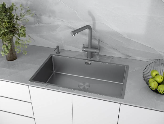 Мойки NEXT 74 UNI в оттенках BG и GM имеют прочное PVD покрытие, которое нанесено на нержавеющую сталь. Оно особенно устойчиво к появлению царапин и истиранию, не содержит микротрещин и является экологически чистым.