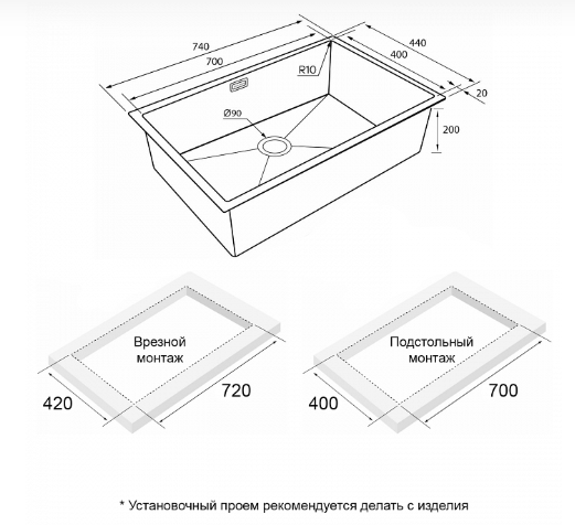Мойка кухонная из нержавеющей стали NEXT 74 UNI.