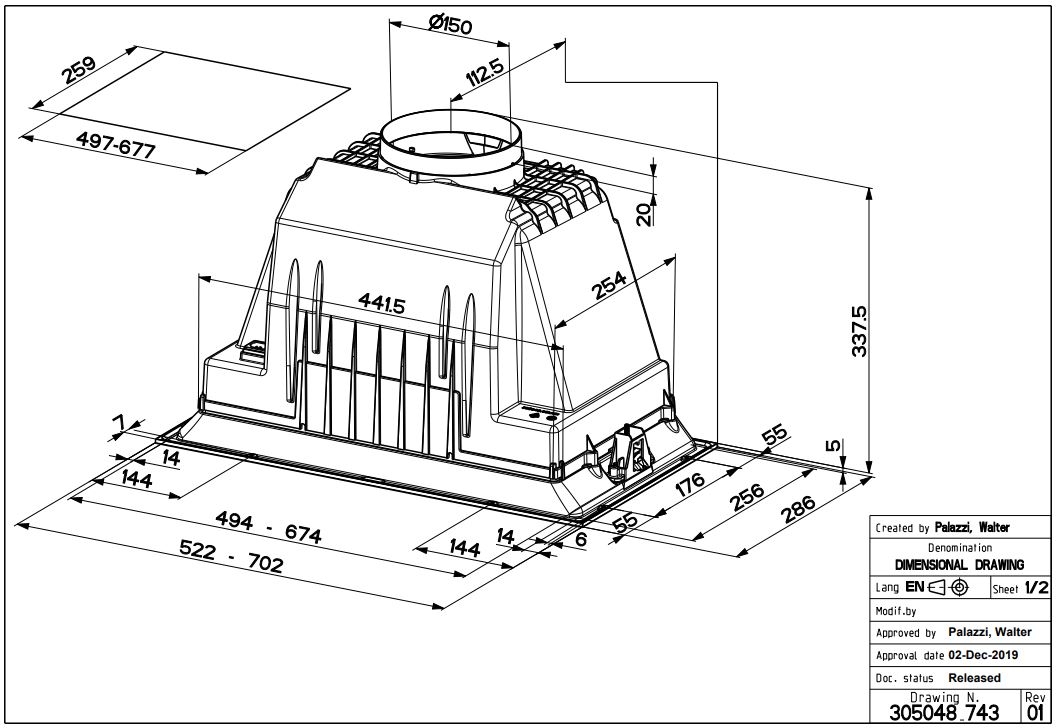 Полновстраиваемая вытяжка Faber Inka Plus HCS BK A70 черный