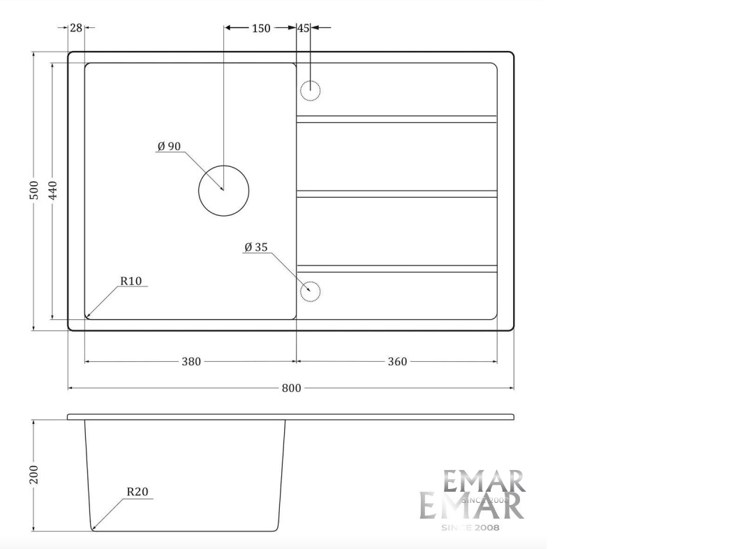 Врезная мойка EMAR EMQ-1800.Q Морион