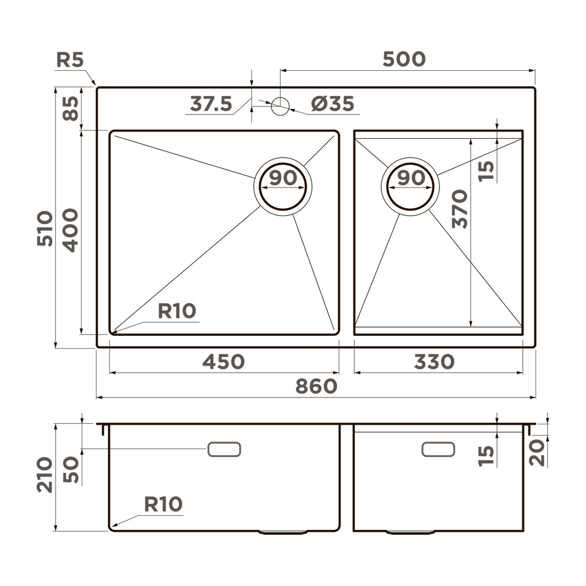Высота (мм) | 210 |
