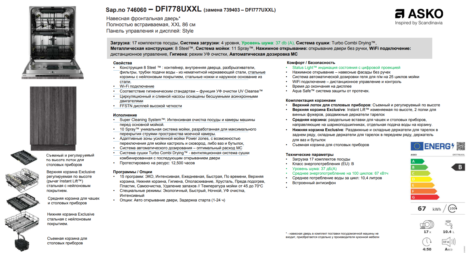 Тип посудомоечной машины | полностью встраиваемая |